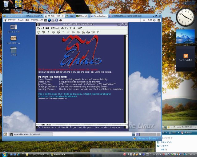 そこで Vista に VmPlayer をインストールし、そこに Linux をインストールし、
